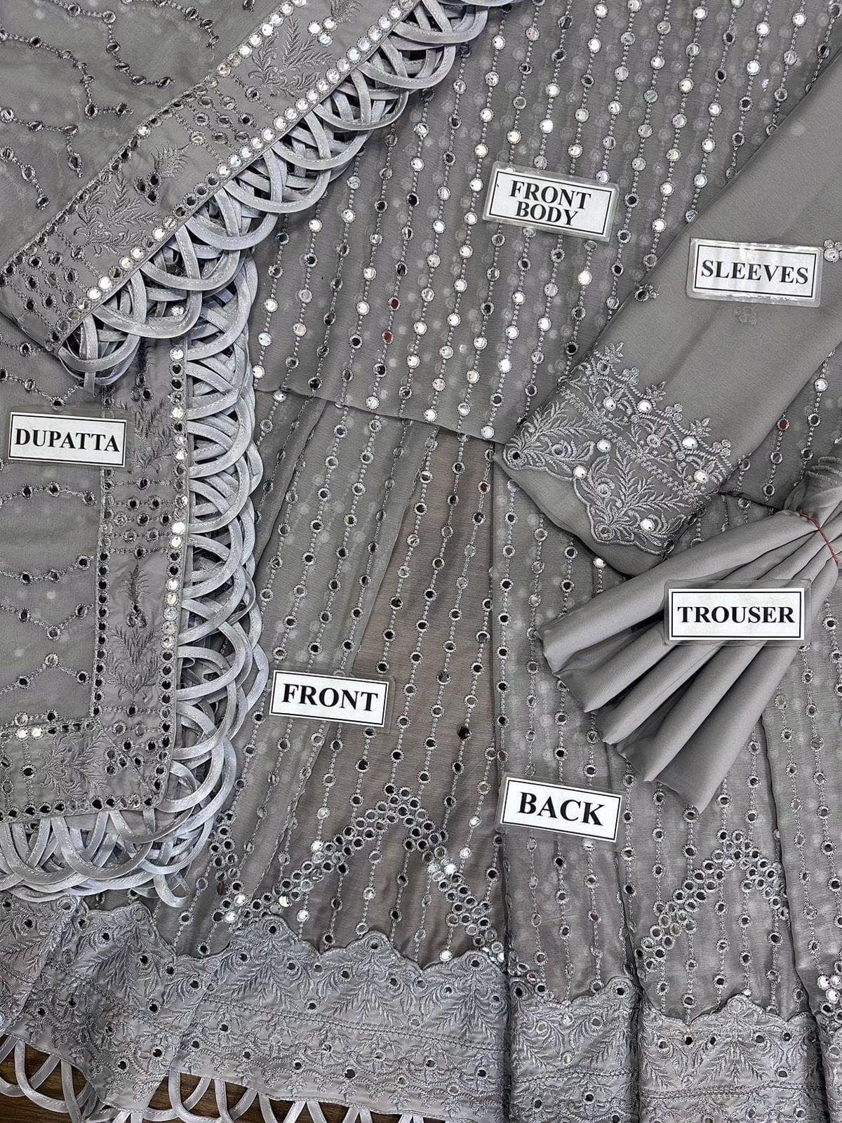 – Maxi (Chiffon): Fully embroidered with rich 9mm sequence work