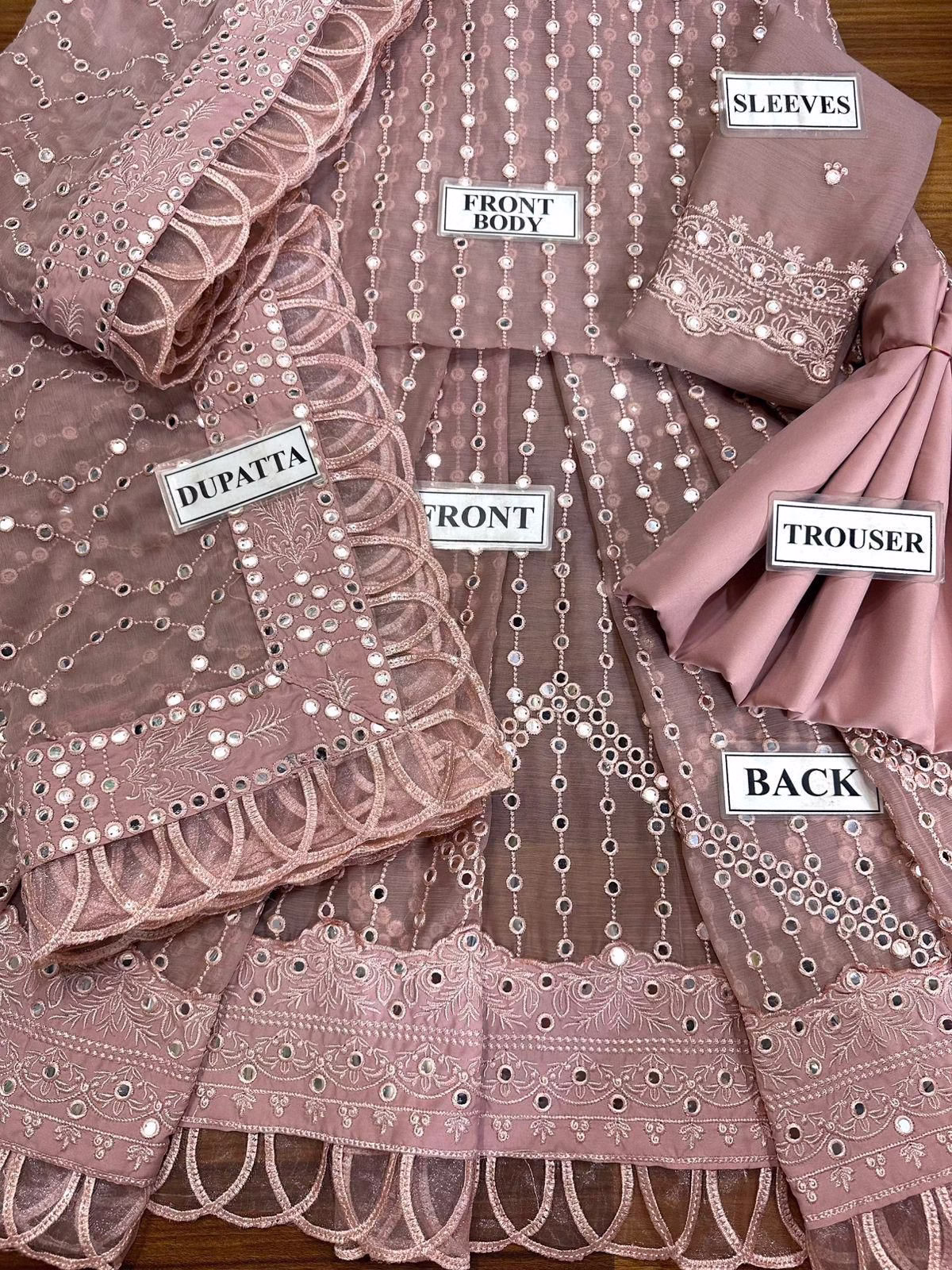 – Dupatta (Chiffon): Embroidered sequence, ready to wear