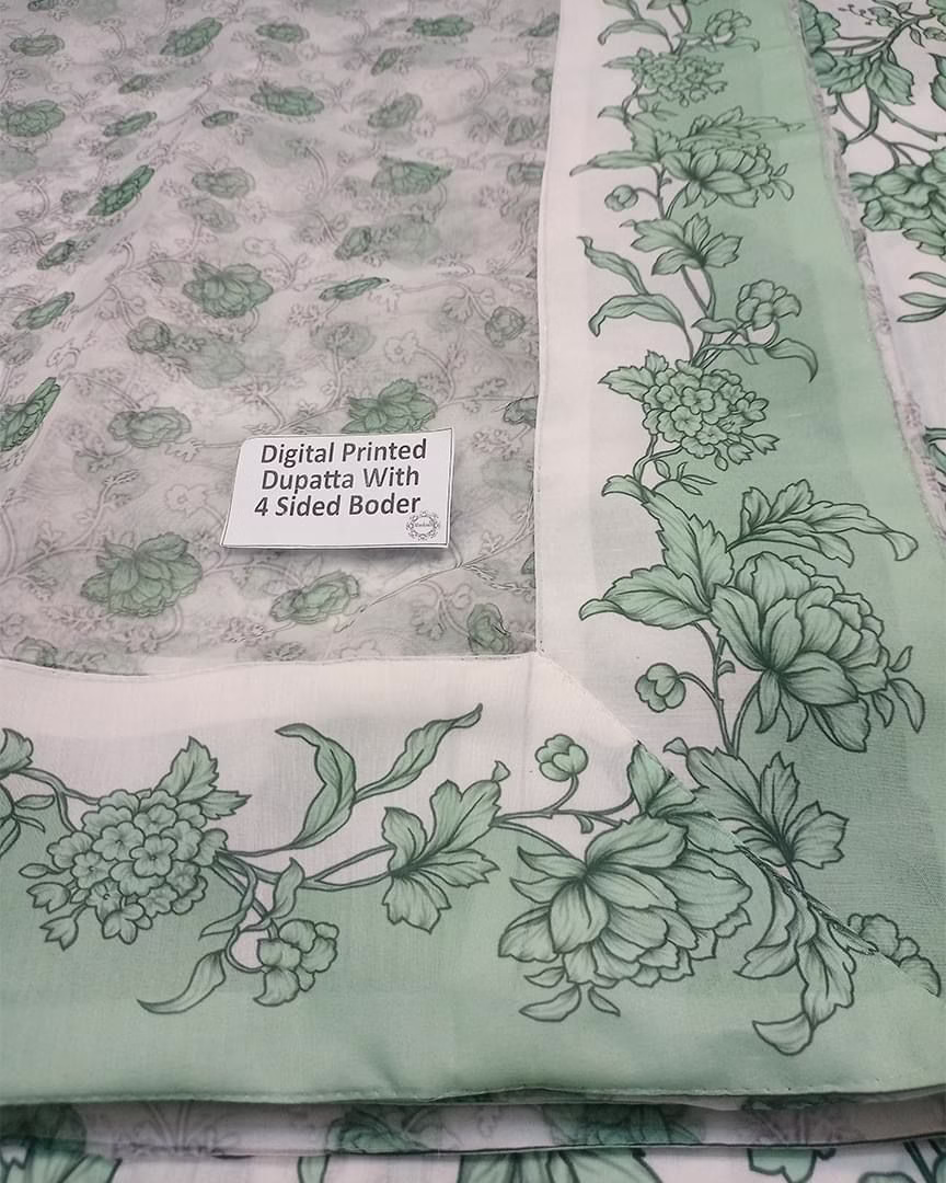 Dupatta: Printed organza with 4-sided border appliqué